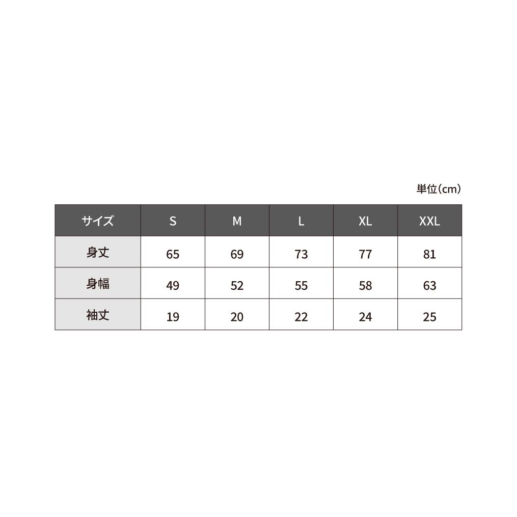 Sサイズ 身丈:65、身幅:49、肩幅:42、袖丈:19 (㎝)